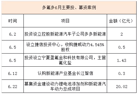 實(shí)際上,包括此次募資項(xiàng)目在內(nèi),今年6月以來,多氟多圍繞新能源產(chǎn)業(yè)已發(fā)起了5起投、募資項(xiàng)目,涉及資金總額逾24億元。