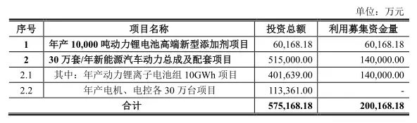 其“30萬套/年新能源汽車動力總成及配套項(xiàng)目”擬投資515000萬元,建設(shè)內(nèi)容包括:年產(chǎn)動力鋰離子電池組10GWh,年產(chǎn)電機(jī)、電控各30萬臺,項(xiàng)目用地面積約847.29畝,預(yù)計建設(shè)周期54個月,經(jīng)測算,該項(xiàng)目達(dá)產(chǎn)后,可實(shí)現(xiàn)年均稅后利潤119423.39萬元。