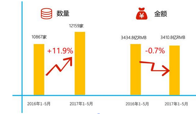 圖2 2016年1-5月與2017年1-5月外商投資情況對(duì)比
