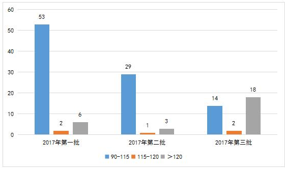 圖4 2017年1-3批新能源乘用車(chē)目錄車(chē)型能量密度分布情況