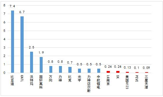 圖5 2016年國(guó)內(nèi)動(dòng)力電池出貨量 單位:Gwh