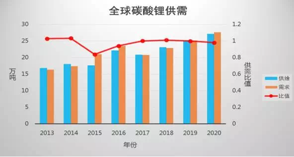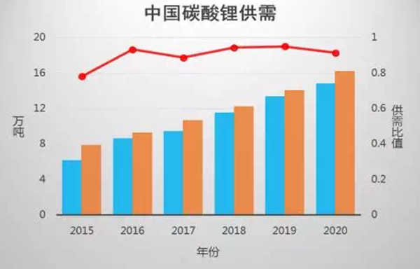 2015年,我國新能源汽車的產(chǎn)量及銷量分別達(dá)到34萬輛和33萬輛,與2014年相比產(chǎn)銷量飆升4倍,也由此帶動了碳酸鋰需求的大幅增長。從2015年開始,我國碳酸鋰需求量一直遠(yuǎn)大于供給量。由于供求關(guān)系,目前無法提供足夠多的碳酸鋰,因此必然會導(dǎo)致價格上漲。