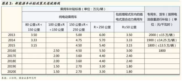 根據(jù)工信部的相關(guān)政策規(guī)定,純電動乘用車補(bǔ)助標(biāo)準(zhǔn)在綜合考慮規(guī)模效應(yīng)、技術(shù)進(jìn)步等因素后逐年退坡;此外,在 16 年上半年政府加大查騙補(bǔ)力度之后,考慮對于政策進(jìn)行調(diào)整和修改。