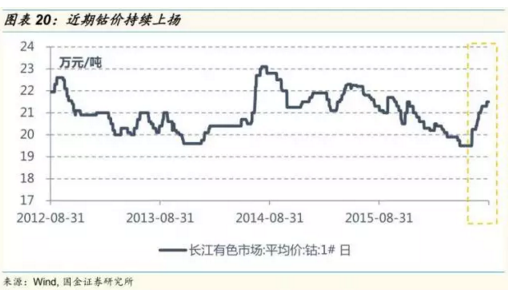 由于 2016 年上半年動力鋰電池市場的快速發(fā)展所帶動的對于鈷的需求提振以及各大礦山減產(chǎn)的預(yù)期,鈷價在 2016 年年中出現(xiàn)了拐點(diǎn) ,預(yù)計未來兩年內(nèi)仍將維持供給緊平衡的態(tài)勢 。從全球市場來看,鈷的需求 42%集中在鋰電池領(lǐng)域,其次是高溫合金(16%)和硬質(zhì)合金(10%);從中國市場來看,電池材料占比高達(dá) 69%。隨著新能源車下游需求逐步明確,國內(nèi)動力電池廠商2016 年-2017 年紛紛擴(kuò)大產(chǎn)能,對于鈷的需求將進(jìn)一步提升。因此從廢舊電池中回收再利用鈷也越來越具有經(jīng)濟(jì)性。