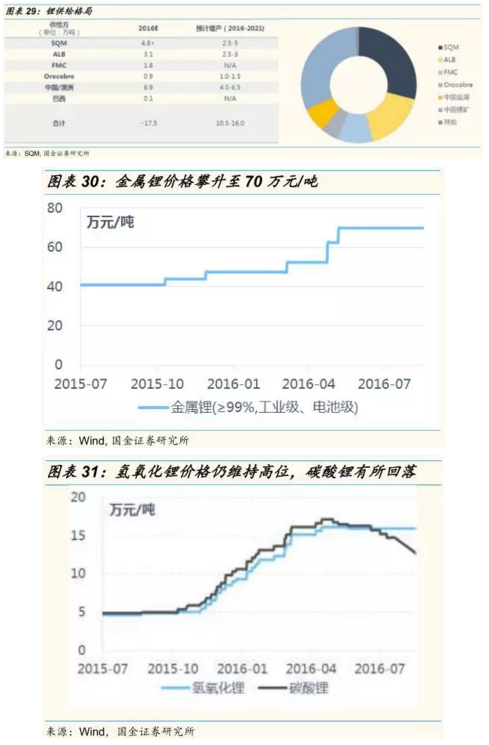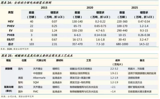2015 年,鋰電池占全部鋰需求的 50% 以上;根據(jù) SQM 的預(yù)測,2016 年到 2025 年鋰需求的復(fù)合增速將達(dá)到 8%-12% ,其中動力鋰電的鋰需求復(fù)合增速將達(dá)到18%-24% ,根據(jù)該預(yù)測,2025 年全球鋰需求將達(dá)到 49萬噸(折 LCE )。