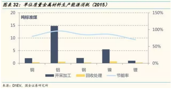 金屬進(jìn)行回收再利用的節(jié)能率在 70%~90% 之間,如果使用電池回收原材料生產(chǎn)電池,在節(jié)能減排方面具有絕對優(yōu)勢??紤]鋰離子電池回收的經(jīng)濟(jì)性問題,需要站在電池的全生命周期考慮。電池原材料以有色金屬為主,我國有色金屬工業(yè)的能源消耗水平與國際先進(jìn)水平存在明顯的差距,能源消耗主要集中在礦山、冶煉和加工三大領(lǐng)域。但有色金屬回收過程的能源消耗遠(yuǎn)小于原生金屬。