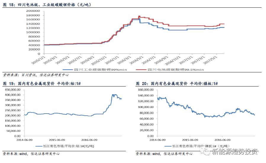 上游原材料情況:鋰鈷價格維持堅挺,將推動回收環(huán)節(jié)發(fā)展。上游鋰鈷資源有限,原料供給偏緊。在新能源汽車快速發(fā)展的帶動下,電池級碳酸鋰和電池級氫氧化鋰的需求不斷攀升;我們預(yù)計鋰價將保持強勢。鈷價大漲后一直維持高位,后期隨著下游需求提升,特別是三元占比的提升,我們預(yù)計鈷價仍將維持堅挺態(tài)勢。未來隨著動力電池回收環(huán)節(jié)的壯大、完全循環(huán)經(jīng)濟(jì)體系的建立,價格有望回歸合理區(qū)間;時間上展望,這估計是2、3年后的事情,此情景有望在2019年展現(xiàn)。