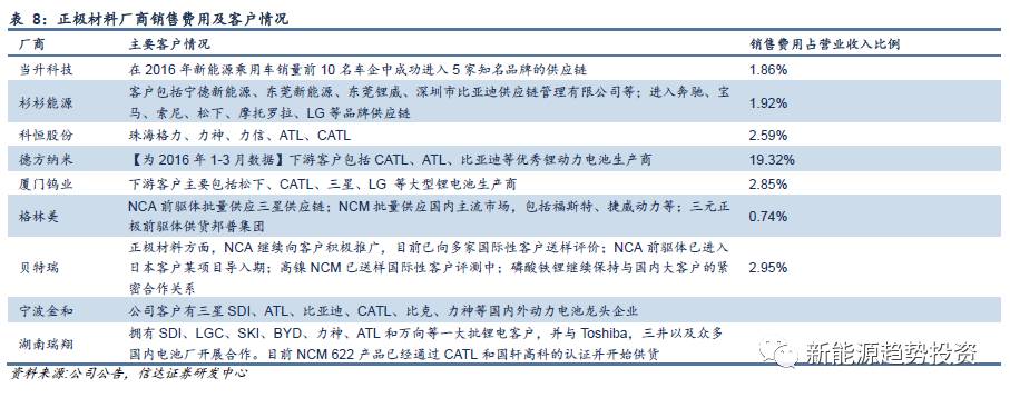 動力電池龍頭集中趨勢開始顯現(xiàn),擁有優(yōu)質(zhì)下游客戶的正極材料廠商將有更加穩(wěn)定的銷售渠道,因此各個正極材料廠商不斷加快與電池龍頭的合作步伐。