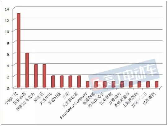 而從電池配套車型數(shù)量來看,45款新能源乘用車由18家企業(yè)電池供應(yīng)商提供配套,其中配套車型數(shù)量最多的是寧德時(shí)代,配套車型數(shù)量達(dá)到13款,主要配套車型有豪情汽車、奇瑞汽車等;其次是國軒高科,配套車型數(shù)量有6款;而欣旺達(dá)、深圳比克動(dòng)力并列第三。
