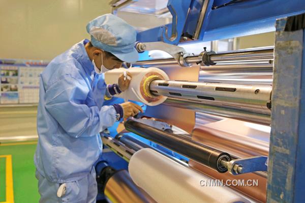 圖為安徽銅冠銅箔公司職工正在生產(chǎn)鋰電箔