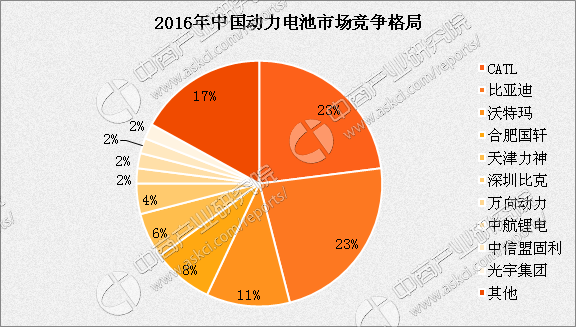 值得關(guān)注的是,我國動(dòng)力電池市場正處于高速發(fā)展階段,企業(yè)處于瘋狂擴(kuò)張時(shí)期,雖然目前前三企業(yè)占比較大,數(shù)據(jù)顯示2016年中國動(dòng)力電池市場規(guī)模為645億元,其中,CATL和比亞迪市場占比均為23%,另外沃特瑪市場占比為11%,三大企業(yè)市場占比超50%。但隨著企業(yè)擴(kuò)張完成,未來前十格局將被打破,行業(yè)高速洗牌期即將來臨。