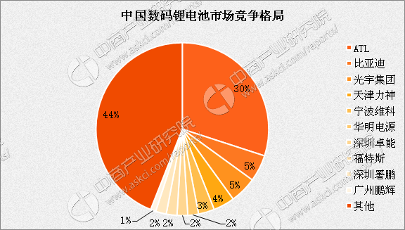 值得關(guān)注的是,目前我國數(shù)碼鋰電電池趨于飽和;現(xiàn)階段國內(nèi)高端型數(shù)碼電池呈現(xiàn)大者恒大趨勢;目前數(shù)碼電芯市場總體平均毛利以下降至10%-15%。另外大企業(yè)不斷擠壓,中小企業(yè)面臨被并購和倒閉風(fēng)險(xiǎn)。數(shù)據(jù)顯示2016年中國數(shù)碼鋰電池市場規(guī)模483億元,其中ATL占比30%,其他企業(yè)占比44%??梢?,目前我國數(shù)碼鋰電池仍是一家獨(dú)大的局面。