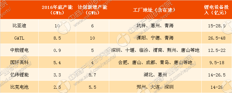 2017年國內(nèi)動(dòng)力電池廠商擴(kuò)產(chǎn)計(jì)劃對(duì)設(shè)備的需求