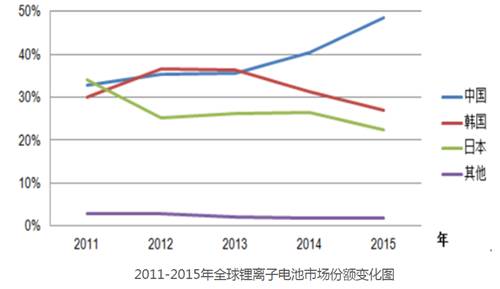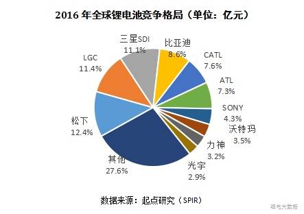 那么目前來看三國競爭態(tài)勢如何?我們看下面的2016年競爭格局圖,全球十強(qiáng)鋰電池公司,日本有兩家:松下和索尼,韓國有兩家:三星和LG,剩下全部是中國企業(yè),其中比亞迪是中國的老大。