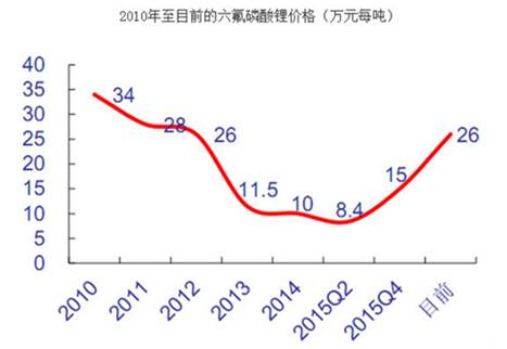 隨后日本企業(yè)為奪回市場份額被迫降價,導(dǎo)致六氟磷酸鋰價格由2010年的34萬元每噸下降至2015年第二季度的最低點(diǎn)8.4萬元每噸,竟然下降了四倍之多,可見當(dāng)初日本人賺了多少錢。