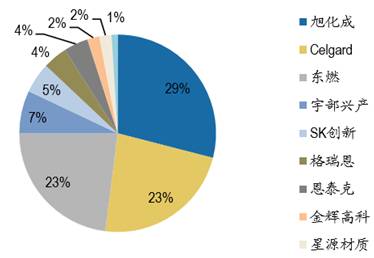 第一是日本旭化成29%,第二是美國Celgard 23%,第三是日本東燃23%,第四是宇部興產(chǎn)7%,第五是韓國SK 5%,第七的恩泰克是美國企業(yè),占4%。