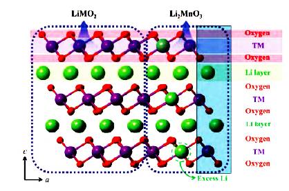 下圖為富鋰三元正極材料xLi2MnO3˙(1-x)LiMn1/3Ni1/3Co1/3O2(0.1≤x≤0.5)的結(jié)構(gòu)示意圖,由于其特殊的結(jié)構(gòu),可脫出更多的鋰,具有寬電壓窗口和高比容的優(yōu)勢(shì),近年來(lái)被研究者所青睞。