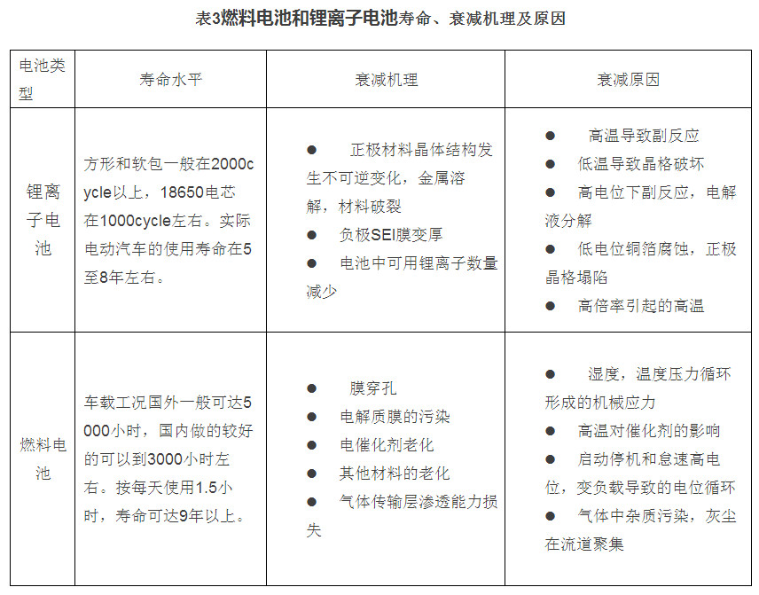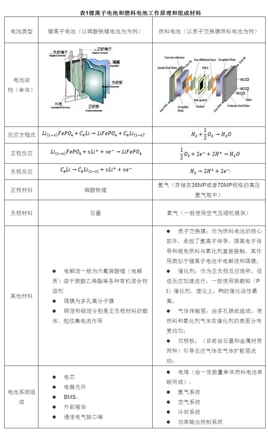 二、鋰離子電池與燃料電池的主要技術(shù)特性