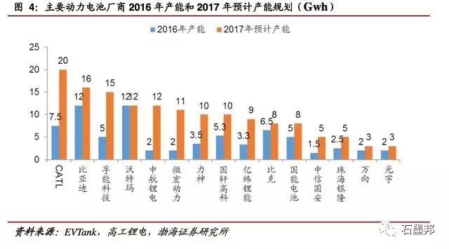 上述兩個(gè)政策明確的指出了產(chǎn)業(yè)發(fā)展的方向,擴(kuò)大優(yōu)質(zhì)產(chǎn)能規(guī)模,形成規(guī)模效應(yīng),進(jìn)一步降低生產(chǎn)成本。各大廠商早在 15 年就開始紛紛進(jìn)行產(chǎn)能擴(kuò)張,2016 年國(guó)內(nèi)動(dòng)力電池有效產(chǎn)能約為 60Gwh,若 2017 年各企業(yè)的產(chǎn)能規(guī)劃能夠達(dá)產(chǎn),我們認(rèn)為 17 年的有效產(chǎn)能在 100Gwh 以上。而根據(jù) 2017 年 70 萬(wàn)輛新能源汽車銷量的預(yù)測(cè),我們預(yù)計(jì) 2017 年的需求為 36.58Gwh,行業(yè) 17 年面臨產(chǎn)能過(guò)剩、競(jìng)爭(zhēng)激烈的局面。