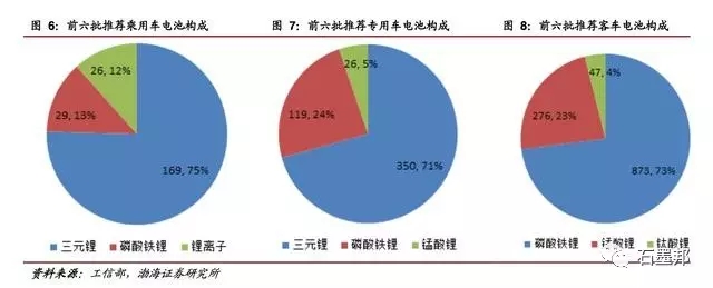 從 17 年前 6 批新能源汽車推薦目錄車型來(lái)看,三元電池在乘用車和專用車的配套比例逐步上升,前六批乘用車的三元電池占比為 75%,專用車占比為 71%,而磷酸鐵鋰電池則繼續(xù)在客車領(lǐng)域保持優(yōu)勢(shì),前六批新能源客車中磷酸鐵鋰電池占比 73%。