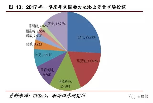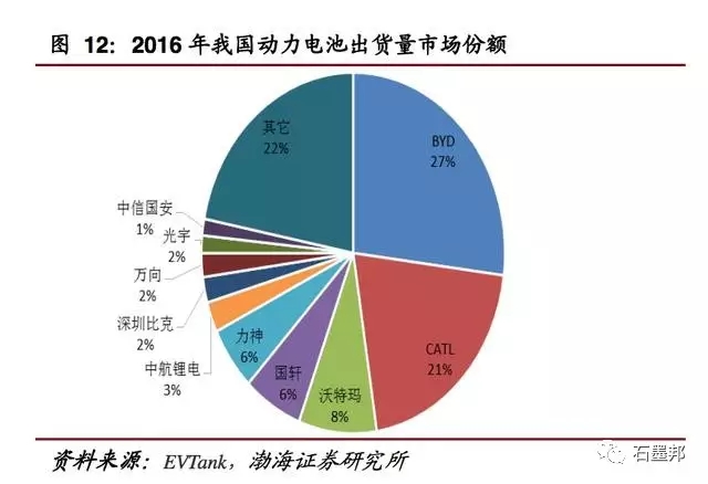 由于看好新能源汽車發(fā)展前景,加之管理層 8Gwh 門檻的設(shè)臵,電池企業(yè)紛紛擴(kuò)產(chǎn),造成產(chǎn)能過(guò)剩,只有兼具產(chǎn)品質(zhì)量?jī)?yōu)勢(shì)和規(guī)模優(yōu)勢(shì)的龍頭企業(yè)可以長(zhǎng)期深度綁定下游客戶,將市場(chǎng)集中度進(jìn)一步提升。2016 年前三家企業(yè)合計(jì)出貨量達(dá)到17.0Gwh,占全部出貨量的比重達(dá)到 55.8%,前十家企業(yè)的市場(chǎng)份額占 78%,17年已經(jīng)超過(guò)了 80%!