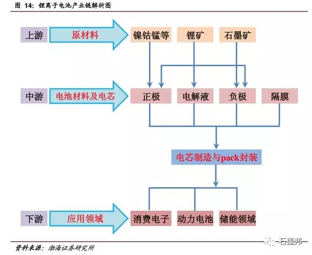 從鋰電池產(chǎn)業(yè)鏈來(lái)看,主要包括鋰原材料、正極材料、負(fù)極材料、電解液、隔膜以及生產(chǎn)設(shè)備等。