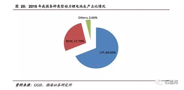 從動(dòng)力電池的裝配車型來(lái)看,目前三元電池和磷酸鐵鋰電池是動(dòng)力電池的主流,其中磷酸鐵鋰憑借在客車領(lǐng)域的優(yōu)勢(shì),2016 年的電池出貨量占比達(dá) 70%以上,而三元電池主要在乘用車和物流車裝配,2016 年的裝配占比 20%左右。