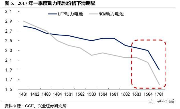 補貼退坡敦促全產(chǎn)業(yè)降成本,動力電池首當其沖。2016年12月30日,新版補貼政策正式落地,乘用車、專用車補貼退坡20%,客車退坡30%-50%。此外國補與地方補貼配比普遍由此前1:1下調(diào)至1:0.5,整體補貼退坡幅度較大。補貼下調(diào)使得動力電池環(huán)節(jié)首先受到?jīng)_擊,一季度銷售價格下滑明顯,對毛利率造成一定沖擊,電池企業(yè)短期內(nèi)壓縮成本的意愿十分強烈。此外,新一輪補貼退坡將在2019年到來,率先實現(xiàn)降成本的電池企業(yè)將在一年半后的再次退坡中占得先機。