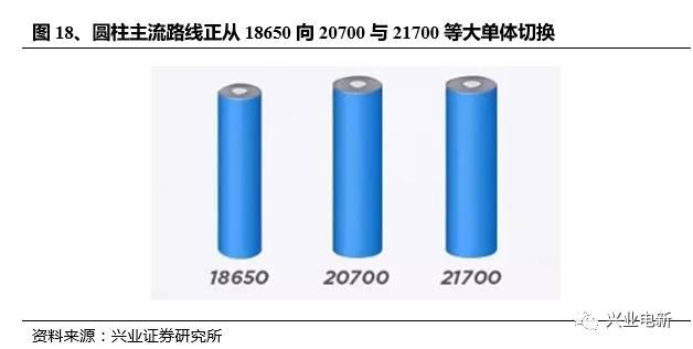 圓柱路線目前成本最低,主要通過18650向20700與21700等大容量單體切換實現(xiàn)進一步降本;