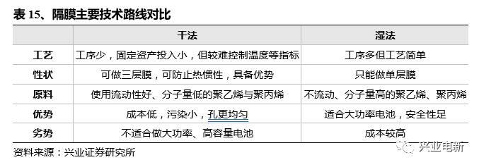 隔膜工藝主要分干法與濕法兩類。隔膜的性能決定了電池的界面結(jié)構(gòu)、內(nèi)阻等,直接影響電池的容量、循環(huán)以及安全性能等特性,性能優(yōu)異的隔膜對提高電池的綜合性能具有重要的作用。隔膜技術路線主要分為干法與濕法兩種,干法成本較低但不適合大功率電池,濕法更薄能夠滿足大功率的要求,但是成本較貴。最早的主流是干法;2015年三元產(chǎn)量上升后濕法使用較多,預計2020年干濕法占比50%,分別應用于中低端與高端領域。