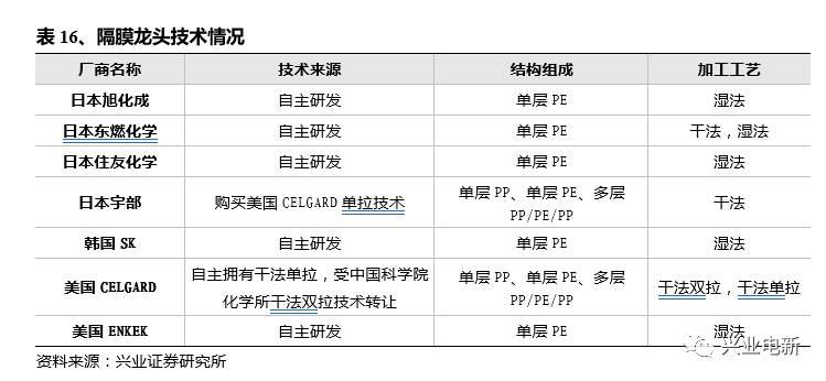 國產(chǎn)隔膜距離海外一線龍頭仍有差距。日本的旭化成是隔膜行業(yè)的龍頭,市占率在50%以上。過去1-2年,中國還有不少企業(yè)進入市場,但無法對龍頭地位構(gòu)成撼動。旭化成干法現(xiàn)在可量產(chǎn)出貨的是12微米,濕法還是6-7微米。由于原料、技術、工藝與制備設備的差距,目前國產(chǎn)隔膜一致性較差,且厚度無法達到要求,干法20-40微米仍為主流。