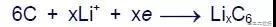 一個(gè)電源給電池充電,此時(shí)正極上的電子e從通過外部電路跑到負(fù)極上,正鋰離子Li+從正極“跳進(jìn)”電解液里,“爬過”隔膜上彎彎曲曲的小洞,“游泳”到達(dá)負(fù)極,與早就跑過來的電子結(jié)合在一起。此時(shí):