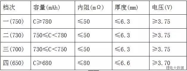 b) 全檢電池厚度、電壓、內(nèi)阻,分類方法如下:
