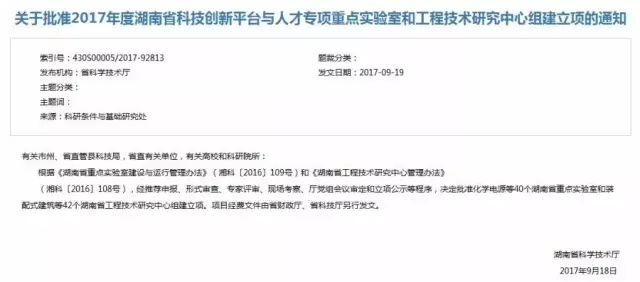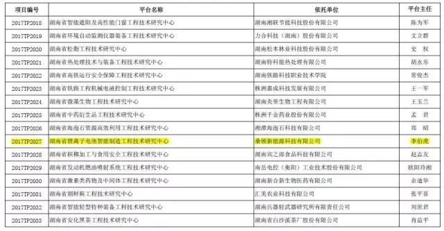 中國儲能網(wǎng)訊:9月19日,湖南省科技廳發(fā)布《關(guān)于批準(zhǔn)2017年度湖南省科技創(chuàng)新平臺與人才專項重點實驗室和工程技術(shù)研究中心組建立項的通知》,正式批準(zhǔn)桑頓新能源組建的“湖南省鋰離子電池智能制造工程技術(shù)研究中心”及其它42個湖南省工程技術(shù)研究中心組建立項。