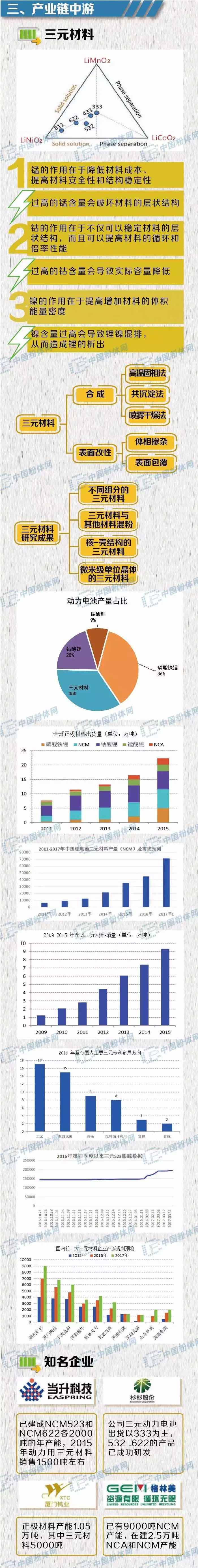 中國儲能網(wǎng)訊:鋰離子電池是20世紀(jì)90年代迅速發(fā)展起來的新一代二次電池。廣泛用于小型便攜式電子通訊產(chǎn)品和交通工具。電池材料分為正極材料、負(fù)極材料、隔膜、電解液等。正極材料是制造鋰離子電池的關(guān)鍵材料之一,占據(jù)電池成本的25%以上,其性能直接影響了點(diǎn)吃的各項(xiàng)性能指標(biāo),在鋰離子電池中占據(jù)核心地位。本文主要介紹了三元材料產(chǎn)業(yè)鏈。