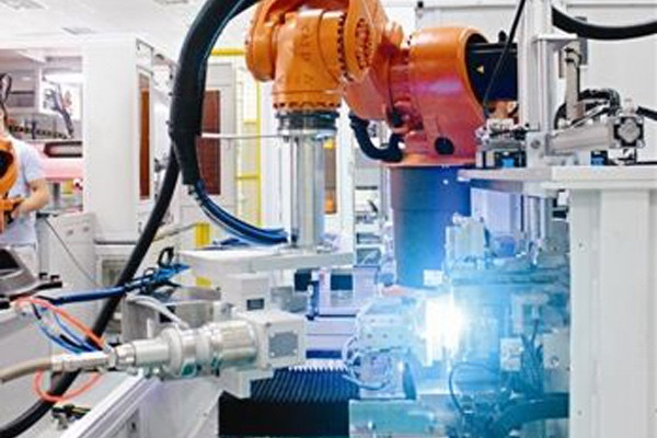 自動化生產(chǎn)線上的機(jī)器人激光焊接機(jī)
