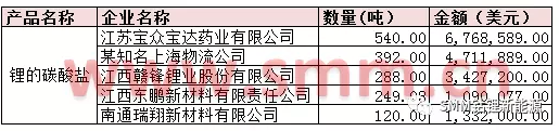表二:8月碳酸鋰進口量值TOP5企業(yè)(來源:海關(guān)信息網(wǎng),SMM)