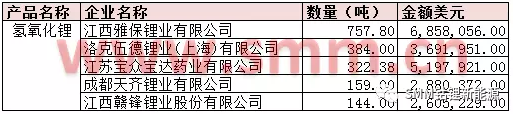 表三:8月氫氧化鋰進口量值TOP5企業(yè)(來源:海關(guān)信息網(wǎng),SMM)