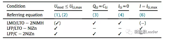 下表是對幾種電池與NiZN、NiMH電池并聯(lián)時的效果的總結(jié),從第一列可以看到幾種并聯(lián)方式都能夠使的電池組的最大電壓小于鋰離子電池的最大限制電壓,避免鋰離子電池發(fā)生過充。從第二列可以看到,除了LFP/LTO-NiZn電池不能充分利用鋰離子電池容量外,其他的兩種并聯(lián)方式都能夠充分的利用鋰離子電池的容量,因此也能夠?qū)崿F(xiàn)對電池組的均衡(第三列)。從第四列可以看到,受到并聯(lián)的NiZn、NiMH電池的影響,電池組的最大放電電流要小于鋰離子電池的最大電流,因此在實際使用中需要選用高功率型的NiZn、NiMH電池,以保證電池組的性能不降低。