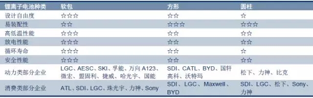軟包與方形、圓柱電池特性對(duì)比及相關(guān)企業(yè)