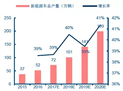 2015-2020年我國(guó)新能源車產(chǎn)量及增長(zhǎng)率預(yù)測(cè)