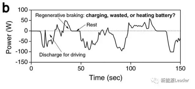 我們知道在電動汽車的使用過程中,除了正常行駛外,還會發(fā)生剎車等情況,電動汽車在剎車等過程中一般都會進行能量回收,在鋰離子電池溫度足夠的時候,這部分能量會直接存儲在鋰離子電池中,但是當鋰離子電池溫度過低時,為了防止鋰離子電池在低溫下充電造成負極表面析鋰,這部分能量通常被浪費掉。Guangsheng Zhang利用自加熱電池快速自加熱的特性,設(shè)計了低溫下的制動能量回收管理程序,在電池溫度較低時,回收能量會首先用于加熱電池,當電池溫度加熱到合適溫度后,然后會將回收的能量存儲到電池。
