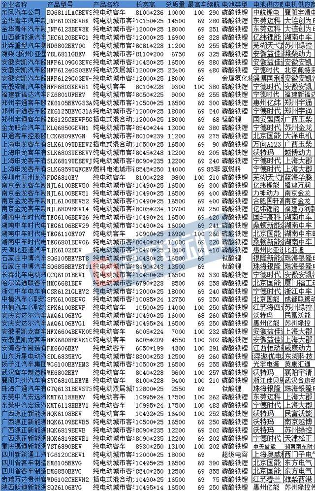 (第十批入選的59款新能源客車(chē)車(chē)型)