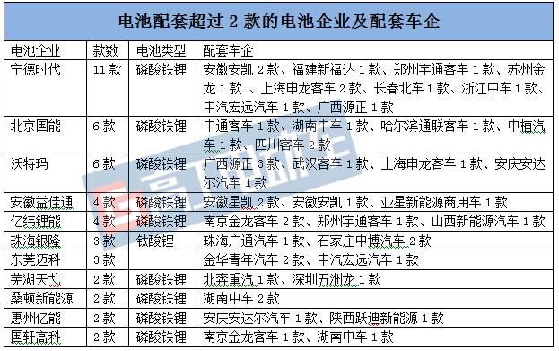 (二)電池配套超過(guò)2款的企業(yè):