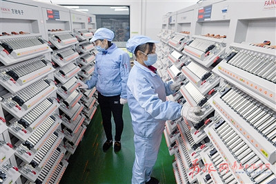 最后,2000毫安時(shí)、2600毫安時(shí)、2800毫安時(shí)三種規(guī)格的單體電芯,還要經(jīng)過測試,將性能基本一樣的組裝進(jìn)一個(gè)電池模塊,進(jìn)而組裝出可供新能源汽車使用的動(dòng)力電池組?!艾F(xiàn)在每日產(chǎn)量是20萬支單體電芯,逐步提產(chǎn)后,我們能達(dá)到40萬支?!倍藕閺┱f。