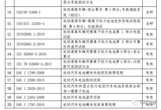 動(dòng)力電池標(biāo)準(zhǔn)國(guó)際標(biāo)準(zhǔn)化制修訂進(jìn)程
