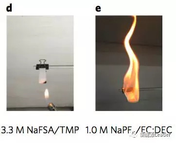 從上面的介紹中我們看出,日本科研工作者研發(fā)的這款電解液的關(guān)鍵在于兩點(diǎn):1)高濃度的LiFSI或NaFSA電解液,這一點(diǎn)是極為關(guān)鍵的,當(dāng)電解液的濃度較低時(shí),無(wú)法在負(fù)極表面形成連續(xù)、穩(wěn)定的SEI膜,會(huì)導(dǎo)致電解液持續(xù)發(fā)生分解,嚴(yán)重影響電化學(xué)性能。在較高的濃度下,負(fù)極表面能夠形成穩(wěn)定性非常好的全無(wú)機(jī)SEI膜,極大的增強(qiáng)了電解液的穩(wěn)定性;2)阻燃劑TMP的加入,阻燃劑TMP的加入很好的提高了電解液在高溫下的熱穩(wěn)定性,改善了電池的安全性。