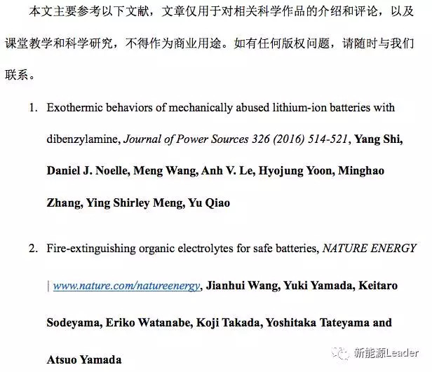鋰離子電池由于電勢(shì)較高,因此只能使用有機(jī)電解液,導(dǎo)致電解液具有較高的可燃性,這也是人們質(zhì)疑鋰離子電池安全性的重要原因。電解液阻燃劑并不是新的發(fā)明,只不過(guò)是因?yàn)樽枞紕┘尤霑?huì)嚴(yán)重的影響鋰離子電池的電化學(xué)性能,為此在商業(yè)電解液中很少添加阻燃劑。為了同時(shí)兼顧電化學(xué)性能和阻燃性能,科研人員提出了多種方法,例如我們之前就曾經(jīng)報(bào)道過(guò)美國(guó)加州大學(xué)圣迭戈分校的科研人員就提出了將阻燃劑DBA(二芐胺)采用膠囊包裝的形式,添加到電解液之中,在電池遭受到機(jī)械擠壓時(shí),阻燃劑DBA能夠快速釋放到電解液之中,阻斷鋰離子電池的電化學(xué)反應(yīng),而在正常使用過(guò)程中DBA被封鎖在膠囊中,不會(huì)對(duì)鋰離子電池的電性能產(chǎn)生影響【1】。