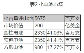 圖1 全球鋰電小型電池的占比情況