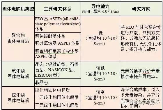 固體電解質(zhì)是全固態(tài)鋰二次電池的核心部件,其進(jìn)展直接影響全固態(tài)鋰二次電池產(chǎn)業(yè)化的進(jìn)程。目前固體電解質(zhì)的研究主要集中在3大類材料:聚合物、氧化物和硫化物。
